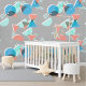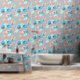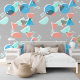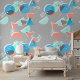 ライトミントグリーンブルーピーチサークルストライプパターン 壁紙