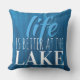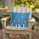 青い木目の背景とビーチテーマ引用文は、"生活は湖で良い"と言う。 この装飾用クッションは、あなたの湖の家や装飾のある部屋に最適航海のである。