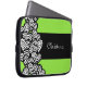 ライムグリーン白黒ゼブラパターンハート名 ラップトップスリーブ