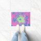 ライムサイケデリックグトリップ(幻覚体験)のようなグリーンとパープルハイビスカス ドアマット