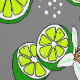 フルーティスタイリッシューの皮とスティックの壁紙は、石板の灰色の背景に緑の柑橘系のライムスライスと白い花のカラフルパタかわいらしーンを特徴とする。キッチンやバーエリアでフィーチャーウォールを作成するのに最適