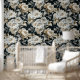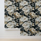 高級エレガント白金ゴールド牡丹の花の柄の壁紙は、黒い背景に高級な白と金ゴールド牡丹の花の柄を特徴とする。家の装飾、壁のアクセントとトリートメント、オフィスの装飾とパーティー装飾に最適。Evco Studio www.zazzle.com/store/evcostudioによって作成