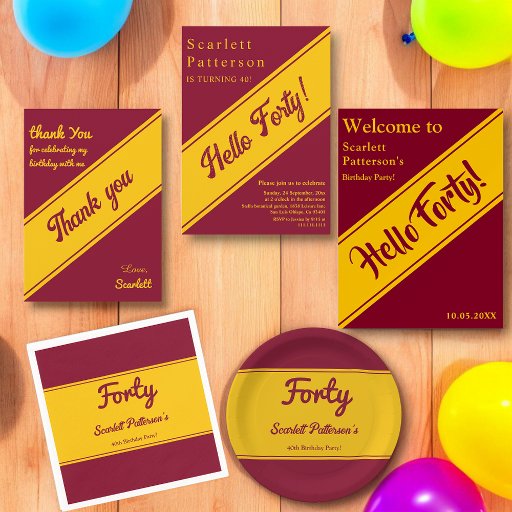 ラグジュアリーエレガント・ブルゴーニュと金ゴールド40歳の誕生日 スタンダードカクテルナプキン