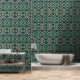 ラグジュアリーマーブルモザイクアールデコブルー金ゴールド&ティール(緑がかった色) 壁紙
