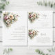 このラスティックなピンクとオレンジの花の結婚式の詳細を記載したカードは、結婚式の招待状に同封するのに最適です。ゲストが特別な日に必要な情報をすべて提供できます。宿泊施設や披露宴の会場、結婚祝いの登録情報、その他ゲストが必要とする重要な詳細を記載できます。