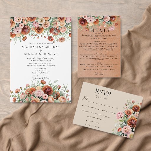 ラストオレンジセージ緑クリームフラワーズ秋の結婚式 招待状