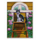 この黒いタキシード猫が梯子の上に達した。