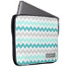 ラップトップのティール(緑がかった色)のグラデーションなシェブロンの名前をカスタムする ラップトップスリーブ