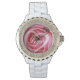 ピンクのバラの上にラディバグの写真を載せた時計。