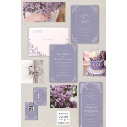 パステルライトパープルフランスの薄紫、ラヴァンダーと赤面ピンクの結婚式招待状で、沿岸のシックで古いお金の美学とシンプルデザインの完璧な組み合わせを醸し出し、あなたの愛と同様に時間を超えて招待を作成すミニマルる。多彩なデザインは、スクリプトとタイポグラフィのクラシックの組み合わせと少しレトロなヴィンテージバラ金ゴールドフォイルグラフィック要素とのロマンチックなテーマを作成しているカップルに最適である。設計はシンプルDesertデザインスタジオ。お客様の特定の色相カスタマイズに合わせて、より多くの色をメッセージをお送り。
