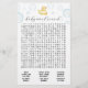 ベビーバブルワード検索ゲームのカードは、泡とゴムのアヒルを特徴とする。ZazzleのAdore紙Co.ショップで利用可能なマッチング項目。