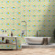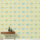 黄色いゴムダッキー(アヒルちゃん)の運転手は、バスタブの中の泡の中で浮き、次の冒険を待っている。黄色いファンキーベース上のカラフル正方形と円のパターンは、バブルで囲まれたシーンのおもしろい背景を作成する。