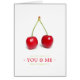 連結されたステムを持つ2つの赤いさくらんぼを備えたカスタマイズ可能なラブカード。愛シンプルする愛と表現愛の方法。独自の文字でパーソナライズするかカスタマイズもし、レイアウトを更に編集する必要がある。マッチング切手も利用可能。