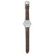 まだはじめのうちは革バンドが固くてつけにくかったですが、しばらく使っていれば大丈夫です。