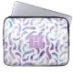 ラベンダーと青の水色の羽モノグラムの ラップトップスリーブ