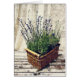 素朴な木製の板の挨拶状のラベンダーのバスケット