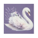 ラベンダー花模様付き水彩白鳥 メタルプリント
