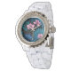 ランとパーム葉の、ブラックのピンクとブルー 腕時計