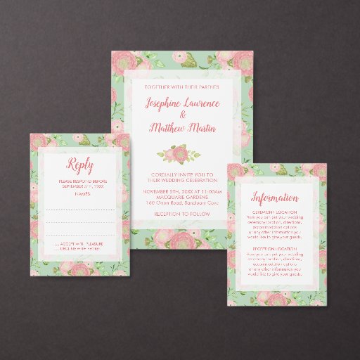 ランヌカルスモノグラムフローラミント結婚ズ 招待状ベリーバンド