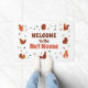 リス愛好家のための完璧なフォーマット、このオリジナルのアートワークデザインは、8つの愛らしいリスかわいらし、手で描かれた葉文字を備えて読、カスタマイズ可能なを取り囲んでいる「ナットハウスへようこそ」。 お客様がリスの愛を見せびらかしながらクスクス笑いを浮かべるようにこの甘いマットで宇宙をスプルアップ!