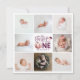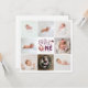 リトルカボチャ1歳モダンの誕生日ピンクと紫の写真コラージュの招待。スクリプモダント文字デザイン。コレクションの一部。
