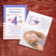 小さな爆竹4歳の誕生日の招待。背景は白だが、好カスタマイズみの色になることができる。テンプレート写真クレジットはCC0にライセンスされているPixabayを介してCC0に置き換える必要があり、独自の写真に置き換えられる