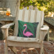 このおもしろいと熱帯の屋外クッションは飾、鮮やかなピンクのフラミンゴがサンタハットを着て、一方の面は黒い背景にパームのが付いて離れ飾、もう一方の面はサンタハットのフラミンゴと一緒に座って、熱帯地域に最適な夏期アクセサリーである。