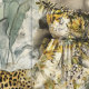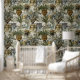 この画像は、緑豊かな熱帯テーマを特徴とする壁紙の繰り返しパターンデザインである。柄には、フローラのドレスを着た女性がヘッドラップ、ゼブラ、チーター、熱帯植物が詰まった大きなプランターなど様々な要素が含まれ華美る。背景にはヤシの木や熱帯性の葉が茂り、密生したジャングルの雰囲気を鮮やか醸し出している。野生生物と植物要素の組み合わせによって、このパターンは視覚的に豊かで魅力的になり、エキゾチックで活気のあるインテリア宇宙の雰囲気を作り出すのに適している。繰り返しパターンの壁紙、緑豊かな熱帯テーマ、フローラドレス、マッチングのヘッドラップ、ゼブラ、チーター、プランター、熱帯植物、ヤシの木、熱帯植物、熱帯植物、密なジャングルの雰囲気、野生動物や植物要素、視覚的に豊かでエキゾチックで活気のある雰囲気、インテリア宇宙。