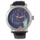 花火7月4日リベルトブルー、赤と白の花火とアメリカの旗のディスプレイを青い背景に独立の日に自由祝の像とセット。7月の幸せ4日、私たちの夏の愛国的な休日の招待状の背中を反転してマッチングのバックを見る。7月スタイリッシュ4日のメモリアルデーバーベキュー、労働日パーティー、または愛国者をテーマにしたパーティーへの招待。