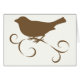 チョコレート色の色のこのシルエットは枝そっくりのリボンにとまるすずめです。 鳥および自然の甘く、ロマンチックな描写。