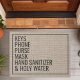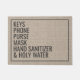 このおもしろいデザインは、"鍵、電話、財布、マスク、手サニタイザ、聖水"という言葉を特徴としている。自分の家のリマインダフェイクーで可愛い素朴なバーラップの国のカスタムドアマットをパーソナライズす離れる。完璧なユニーク引っ越し祝いパーティーモダンや新しい住宅所有者の贈り物。