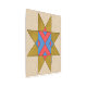朱色、紺色、金ゴールド色の中世スタイル色のアースクリス(星と光に関連する空の記号)のこのスケッチは、より典型的にはラトビアの記号であるが、リンカーンシャーのベルトンの安定したブロックに刻まれた魔女マーク(保護記号またはアポトロパティックマーク)に基づいている。