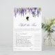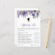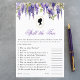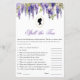 リージェンシーをテーマにしたブライダルシャワーゲームのブリジガートンシリーズファンのブライダルシャワー。上部に紫の藤の水色があ縁どる。その下と文字の上には、楕円形のプロフィールシルエットとしての女性のポートレートがある。書名は書紫のエレガント書名である。10の質問があり、それらのすべてはブリジガートン関連。すべての文字は編集可能であもしるので、あなたが望むなら、質問をより困難なものや花嫁に関する質問に置き換えることができる。