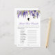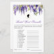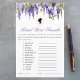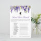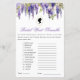 リージェンシーをテーマにしたブライダルシャワーゲームのブリジガートンシリーズファンのブライダルシャワー。上部に紫の藤の水色があ縁どる。その下と文字の上には、楕円形のプロフィールシルエットとしての女性のポートレートがある。書名は書紫のエレガント書名である。12のスクランブルされた言葉があり、通常の単語と(最初の)名前の両方が、それらのすべてはブリジゲロンに関連しているが、シリーズの名前を除いて、ブリジゲートンではなく独占的、それについて不慣れなゲストが彼らを奪う機会を持つようにする。すべての文字は編集可能なので、必要に応じて、他のスクランブルされた単語に置き換える(または追加する)もしことができる。正解: 1.MONDIAD – ダイヤモンド2.HENPAD – ダフネ3.NOSSEA – シーズン4.エロピーン – Penelope 5.DIGROBRENT - Bridgerton 6.SELFRAKS – 完璧な7.トロティーチ – シャーロット8.TIERWAIS – 藤9.NYOTHAN – アンソニー10.NEQUE - queen 11.MONIS - Simon 12.KEUD – デューク