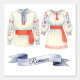 フォーク祝のコスチュームと女性を特徴とする水の色の壁紙を使用したルーマニアの伝統は赤いサッシとフローラ刺しゅう飾り付きで飾ったの。「ルーエレガントマニア」リボンは懐かしい愛国的なtouchを加える。文化的宇宙、民族的子供部屋、または伝統装飾に最適。