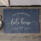 シックなモダンブラシ読スクリプトのLAKE HOUSEとトレンディータイポグラフィ駆動デザインにあなたの家族の名前。カスタム素晴らし湖の家のデコー遠くにル。ロマンチックでスタイリッシュも、私たちの埃っぽいネイビーブルードアマットは、あなたの場所と確立された年の間の甘いカヌーのイラストレーションと上記の家族の名前を特徴としている。