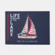 湖のユニーク家パーソナライズされたの名前と赤い帆と飾帆船とストライプことわざ"生活は湖で良い。 このテンプレートは、簡単に自分の姓、ボート名、または別の文字を入力させる。