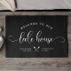 シックなモダンブラシの読スクリプトは、トレンディータイポグラフィ駆動デザインで我々の湖の家へようこそ。カスタム素晴らし湖の家のデコー遠くにル。ロマンチックでスタイリッシュも、私たちの黒いドアマットは、あなたの場所と確立された年の間の甘いカヌーのイラストレーションを特徴とする。