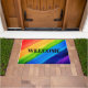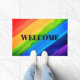 レインボーウェルカムフォーマット。この鮮やか形式は飾虹の色の水の色のストライプと歓迎の言葉と一緒である。好きな言葉を変えもしてもいい。オリジナル水彩©ミケーレ・デイヴィス。