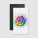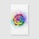 白い背景に虹の花びらを持つ大きな咲き誇るバラ絵を描、カラフルの飛び散りとともに、明るく絵を描す。3次元