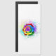 白い背景に虹の花びらを持つ大きな咲き誇るバラ絵を描、カラフルの飛び散りとともに、明るく絵を描す。3次元