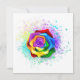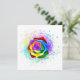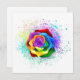 白い背景に虹の花びらを持つ大きな咲き誇るバラ絵を描、カラフルの飛び散りとともに、明るく絵を描す。3次元