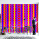レインボーカラーネオンストライプと円パターンアート 壁紙