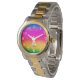 レインボーグリッター腕時計パープル、イエロー、グリーングリッターの背景、名前、イニシャル、モノグラム。レインボーパーソナライズされたユニコーングリッターテクスチャー腕時計このテンプレートの個人用設定を使用して文字を変更 |必要なカスタマイズ文字のスタイルと色を変更するには、MOREオプションを使もし用する。