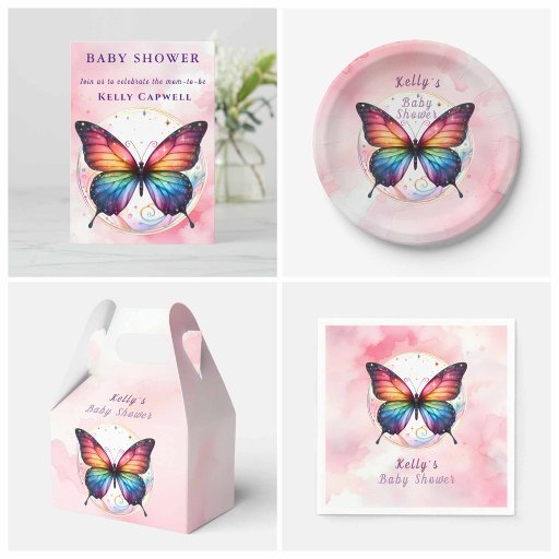 美し感謝していい虹のグリッターバタフライを備えた次の赤ちゃんシャワーのための素敵な箱