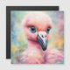 愛らしい小さなフラミンゴと水色の花。