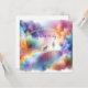 水彩画のイラスト。虹の橋で会おう。幻想的で夢のようなシーンで、カラフルで繊細な虹の橋が、青、ピンク、黄色の鮮やかな色合いの柔らかく渦巻く雲で満たされた幻想的な風景を横切っている。雰囲気は穏やかで魔法的で、星のきらめきと光の軌跡に囲まれて、驚きと静けさを呼び起こし、シーンの魅力を高めている。
