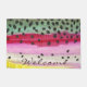 このユニークWelcome Doormatは、美しい色のニジマスの肌だけを特徴としている。この豪華な魚に精通した漁師や魚類学者にとって、魚を識別するために魚の全体を見る必要はない。このマスのアートはダグ・シュルツのオリジナルの水絵画色から来ている。-----フライフィッシング、魚類学素晴らし、魚の一般的なマス特に引っ越し祝いパーティー、クリスマス、誕生日、父の日、母の日、退職、任意の日を愛する人々のための一種の贈り物をする。-----ホーム素晴らしデコール、オフィス、ショップ、店舗、キャビン、ロッジ、ベッド&ブレックファースト、レストラン – どこでも人々は魚の言葉話の言語。-----この同じ魚のアートは他の何百ものアイテムでも利用できる。そして、このウェルカムマットはまた、ブラウンマスの皮膚で利用可能なサルモトリュッタ;そして、レインボトルトと一緒に、oncorhynchus mykiss.