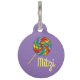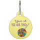 ペットタグは、紫色の背景に美味しいレインボー棒つきキャンデーのオリジナルマーカーイラストレーションを備えている。ペットの名前と情報で自分の連絡好きな猫や犬のラベルを作るだけだ。