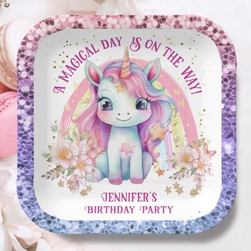 レインボー紙吹雪7thバースデーパーティーガールズユニコーン 招待状